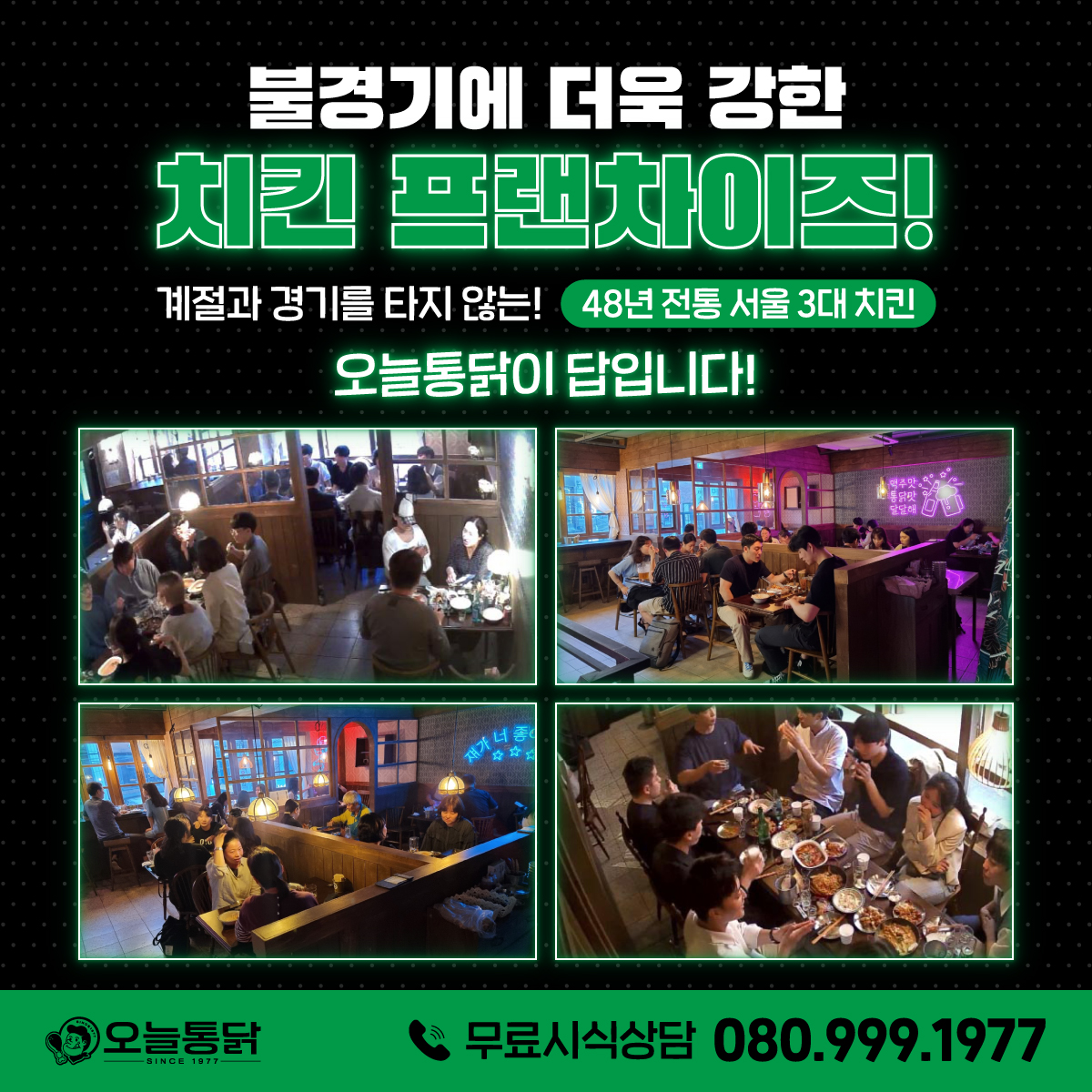 오늘통닭은 소규모 자본으로 시작할 수 있는 치킨 프랜차이즈로, 청년창업자에게 비교적 진입장벽이 낮고 안정적인 수익 모델을 제공합니다.